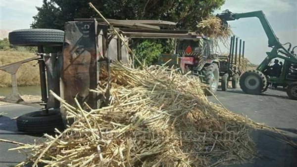 إغلاق طريق (مصر/أسوان) الزراعي بسبب انقلاب مقطورة محملة بالقصب