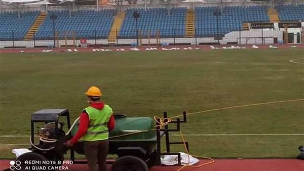 صيانة أرضية ملعب استاد الإسكندرية الدولي لاستقبال المباريات