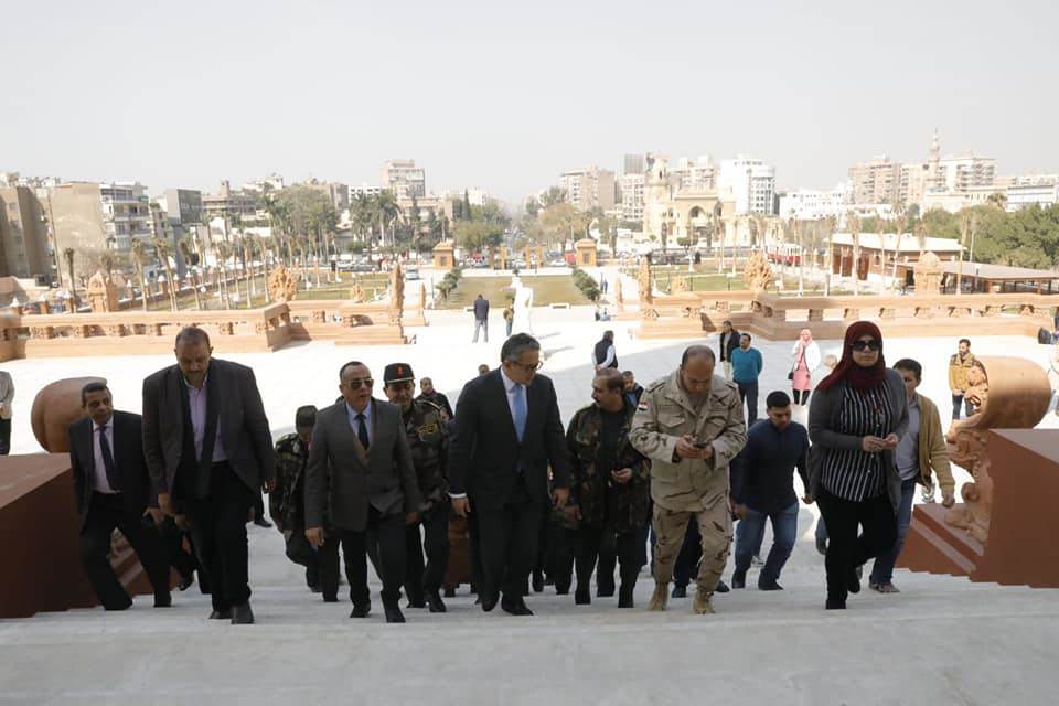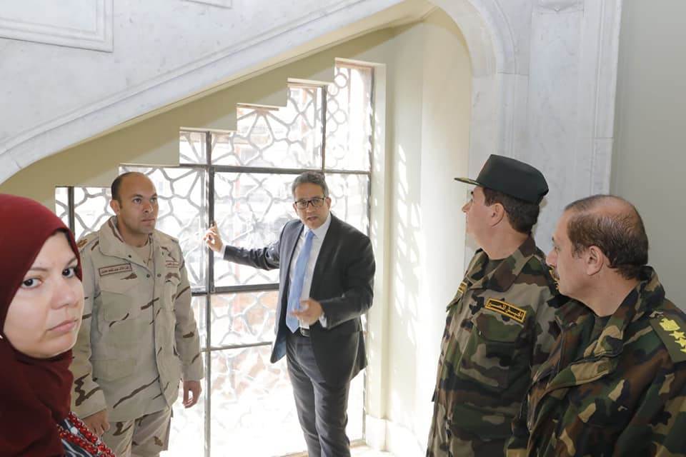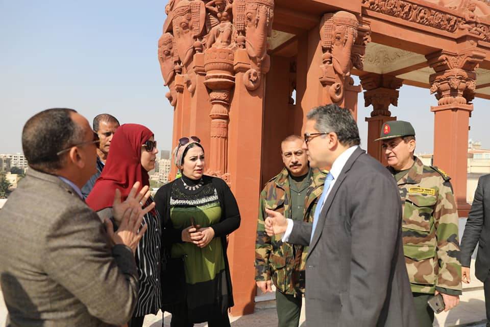 بدات الجولة بتفقد الحديقة و اعمال ترميم عربة ترام مصر الجديدة القديمة و المعروضة بالحديقة ثم تفقد وزير السياحة و الاثار القاعات المختلفة للقصر و البدروم الذي سوف يتم تحهيزه تمهيدا لتحويلة الي مدرسة للتربية المتحفية لنشر الوعي الاثري لدي الاطفال. كما تفقد الوزير حجرة التحكم الإلكتروني و نظام تامين القصر. و خلال الجولة ابدي وزير السياحة و الاثار بعض الملاحظات في الأعمال و امر بسرعة اجرائها تمهيدًا للافتتاح الوشيك.