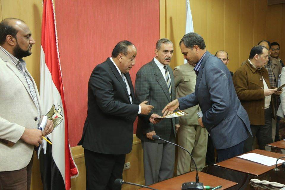 سلم اللواء جمال نور الدين، محافظ كفرالشيخ، منذ قليل، 14عقد تقنين أراضي أملاك الدولة للمستفيدين من المواطنين واضعي اليد على أملاك الدولة، مع استكمال كافة الإجراءات الخاصة بالتقنين وموافقة الجهات المعنية طبقاً للقانون، وذلك تنفيذًا لتعليمات الرئيس عبد الفتاح السيسي، رئيس الجمهورية، بتفعيل قانون تقنين وضع اليد وفقًا لقرار مجلس الوزراء رقم 18 لسنة 2017 والمختص بتنفيذ بعض قواعد وإجراءات التصرف في أملاك الدولة الخاصة والمنصوص عليها بالأحكام المنفذة للقانون رقم 144 لسنة 2017 وطبقًا للإجراءات الخاصة بمنظومة التقنين واسترداد أملاك الدولة "حق الشعب.