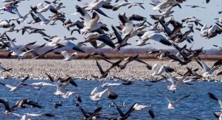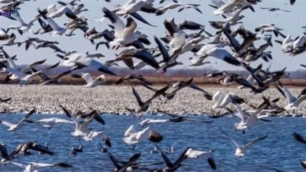 الطيور المهاجرة تشكل سيمفونية فوق بحيرة البردويل