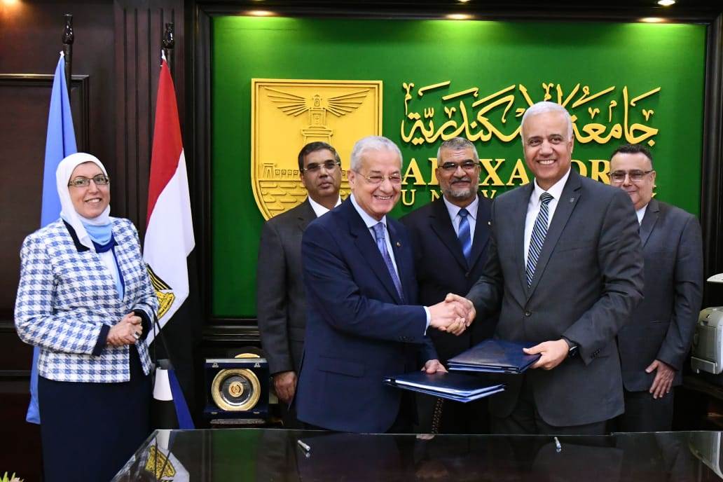 وقع الدكتور عصام الكردى رئيس جامعة الإسكندرية، والمهندس محسن صلاح رئيس مجلس إدارة شركة المقاولون العرب، اليوم الاثنين الموافق 8/3/2020 عقد مقاولة إنشاء مباني فرع جامعة الإسكندرية بمدينة إنجامينا بدولة تشاد.
