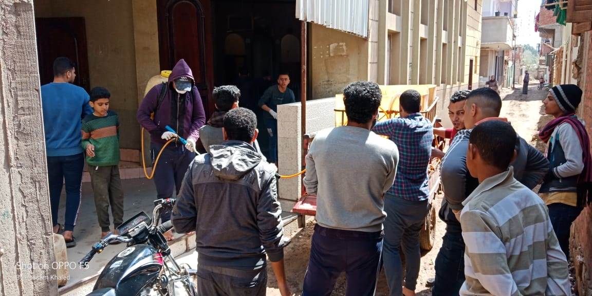 أطلق أهالى قرية ميت العطار التابعة لمدينة بنها، مبادرة شبابية لتطهير وتعقيم المساجد والشوارع من فيروس كورونا المستجد.