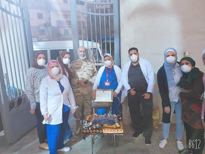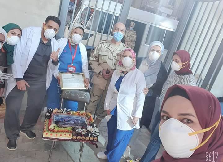 وأرسلت قيادة المنطقة، شهادات تكريم لجميع العاملين، كما أقاموا احتفال صغير داخل المستشفى.