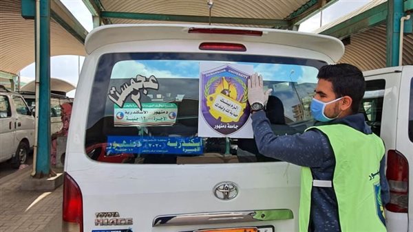 تواصل جامعة دمنهور حملتها "إلزم بيتك حماية ليك ولبلدك" للوقاية من فيروس كورونا المستجد من خلال قيام فريق من طلاب جامعة دمنهور بتوزيع ووضع ملصقات التوعوية للمواطنين علي سيارات الأجرة والنقل العام بإعتبار أن هذه السيارات تنتشر في مختلف المحافظات والمدن والمراكز والقري.