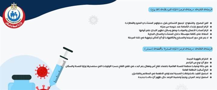 3- في حالة توصيات منظمة الصحة العالمية باعتماد لقاح آمن وفعال، يتم البدء في تلقي اللقاح حسب الأولويات التي ستصدرها وزارة الصحة والسكان.