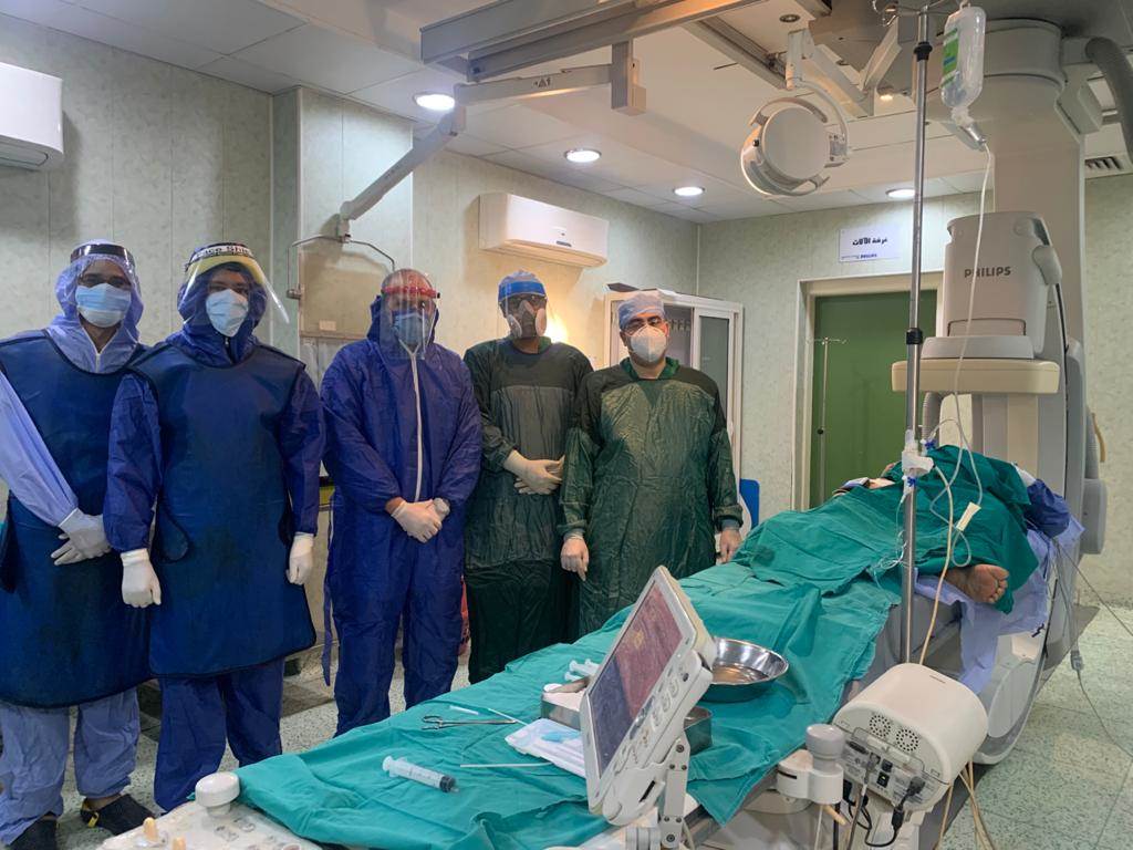 الحالة الأولى، لسيدة مصابة بفيروس كورونا، وتعاني من بطء شديد في دقات القلب، وانسداد كامل في الضفيرة الكهربية للقلب، وتم على وجه السرعة إدخالها إلى القسطرة القلبية، وتم تركيب منظم ضربات القلب وارتفع نبض القلب من ٣٠ إلى ١٠٠، واستقر وضع الحالة وتم نقلها إلى رعاية القلب لاستكمال علاجها.