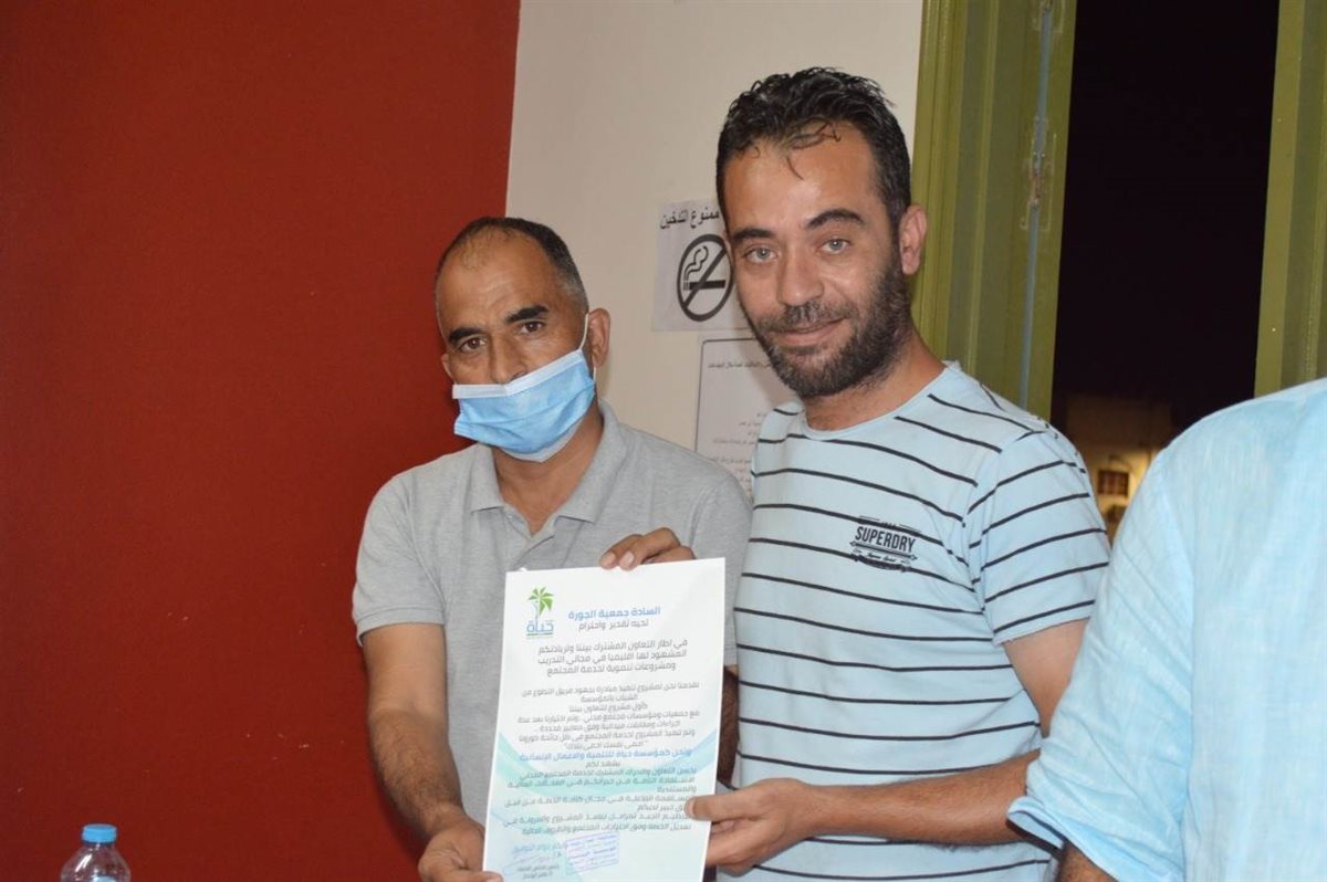 وقد أقيم احتفال التكريم بعد ظهر اليوم فى مقر مؤسسة حياة للتنمية والأعمال الإنسانية بالعريش بحضور المسؤولين والمتطوعين من الجانبين .. الى جانب أعضاء مجلس أمناء مؤسسة حياة وفريق العمل الإداري بجمعية الجورة .. حيث قام كل من : الدكتور بكر سويلم المدير التنفيذى لجمعية تنمية المجتمع بالجورة والدكتور خالد زايد مدير المشروعات فى الجمعية بتسليم شهادات التكريم الى الشباب المتطوع والمنفذ للمبادرة ، وهم من فريق التطوع بمؤسسة حياة للتنمية والأعمال الانسانية بسيناء .