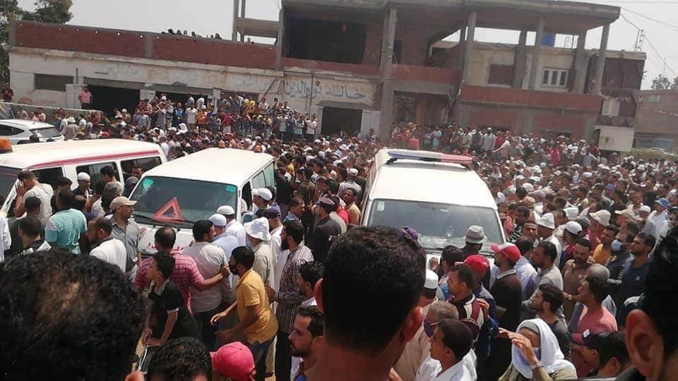 وكان الضحايا لقوا مصرعهم في حادث سير أثناء عودتهم من عملهم بمحافظة مرسى مطروح، لقضاء إجازة عيد الأضحى، لتتشح القرية بالسواد حزنًا عليهم.