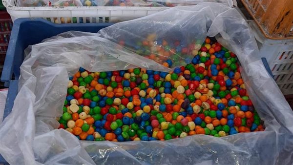 كمية قدرها 1100 كجم بسكويت هوالك مجهولة المصدر وبدون بيانات وكمية قدرها 600 كجم لبان هوالك مجهولة المصدر وبدون بيانات.