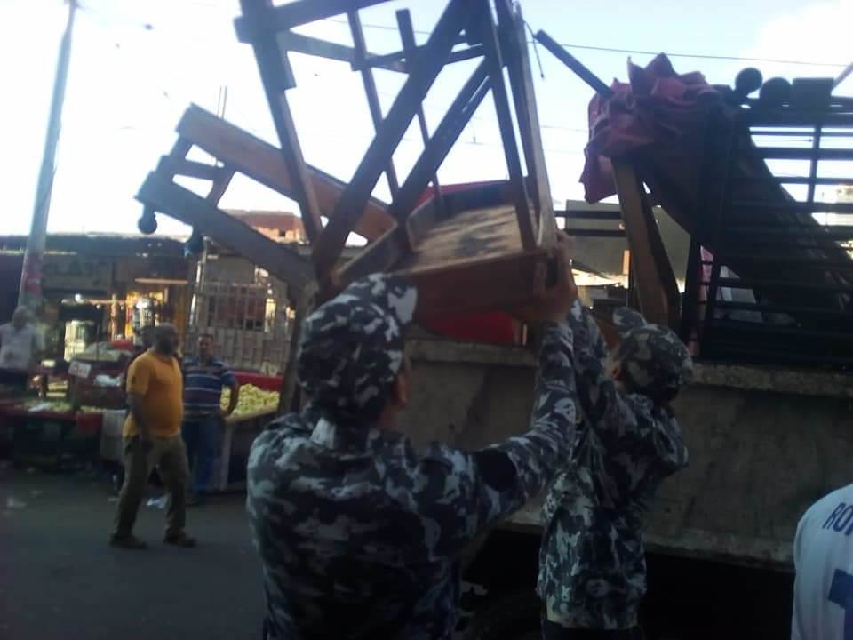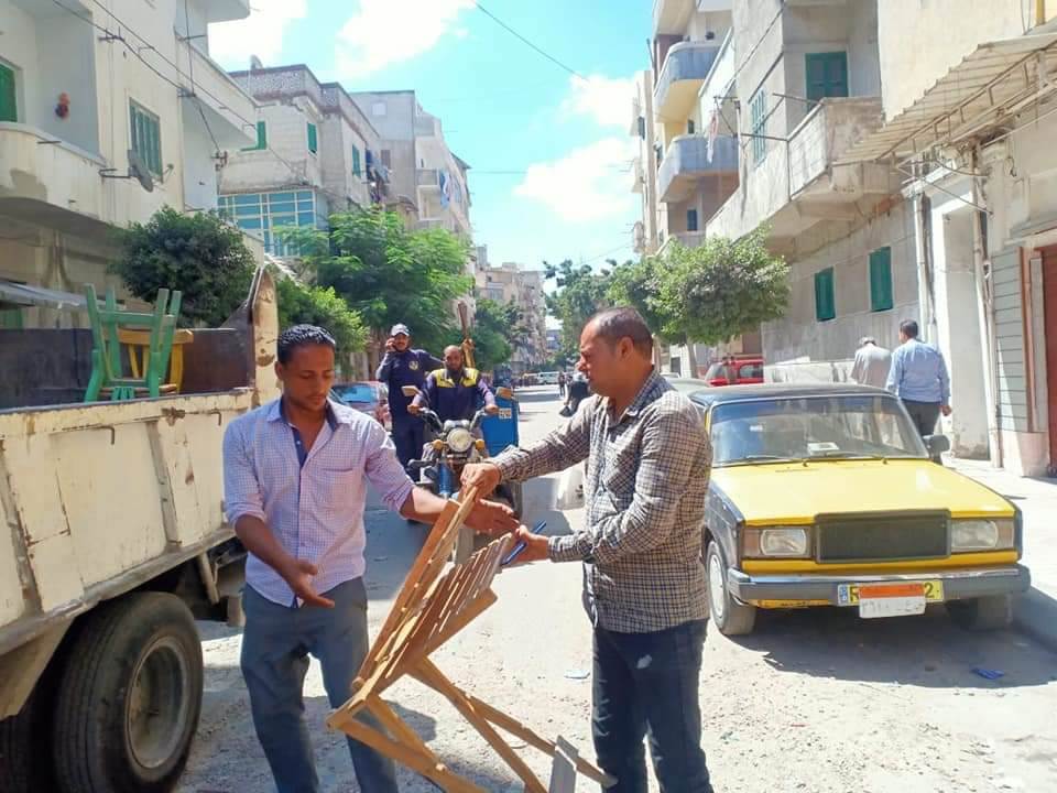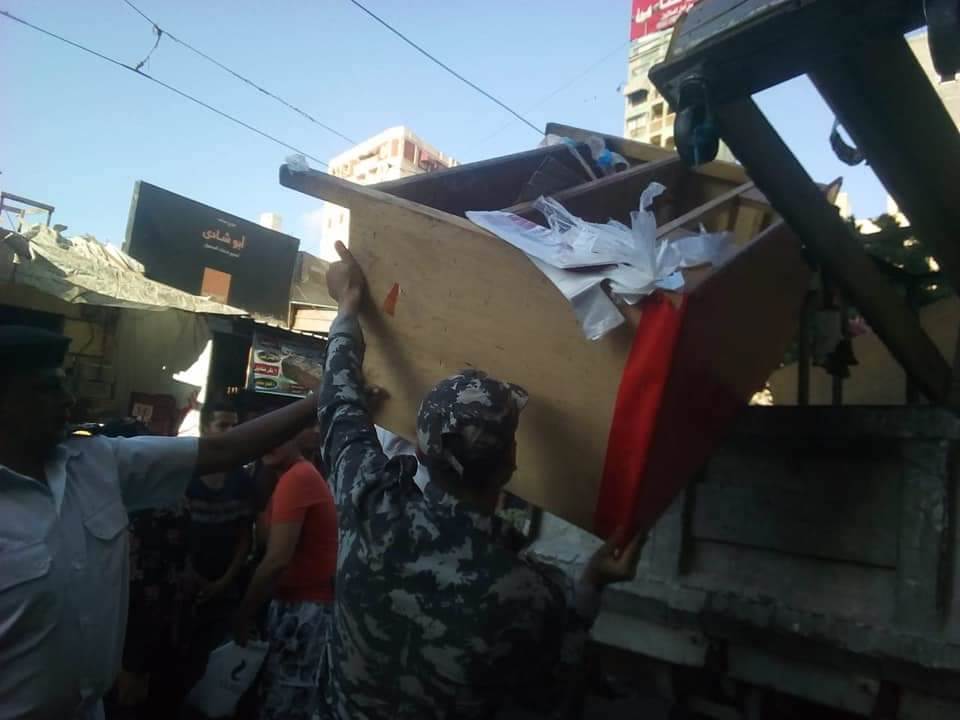 رفع وتطهير الميدان من كميات كبيرة من الترابيزات والاقفاص،والهالك.