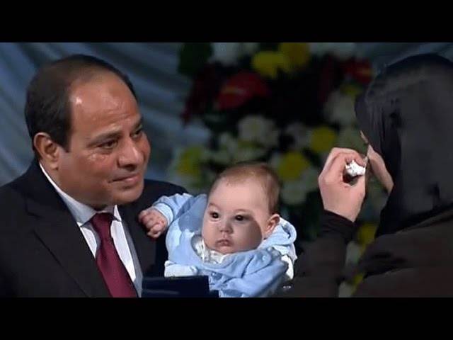 وأهدى الطفل للسيسي مصحفًا كهدية تذكارية، وتحدث إليه عن مشاكل قريته التي يعاني معظم القاطنين بها من الفشل الكلوي وسرطان الدم بسبب تلوث المياه وري الأراضي الزراعية بمياه الصرف الصحي.