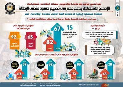 وفي هذا الصدد، نشر المركز الإعلامي لمجلس الوزراء، تقريراً شمل إنفوجرافات تسلط الضوء على قدرة الإصلاح الاقتصادي على دعم مصر في تحجيم صعود منحنى البطالة مصحوباً بتوقعات مستقبلية إيجابية من صندوق النقد الدولي، وذلك بعد أن تسبب فيروس كورونا في ارتفاع قياسي لمعدلات البطالة على مستوى العالم.