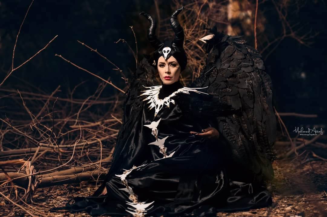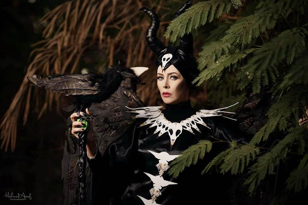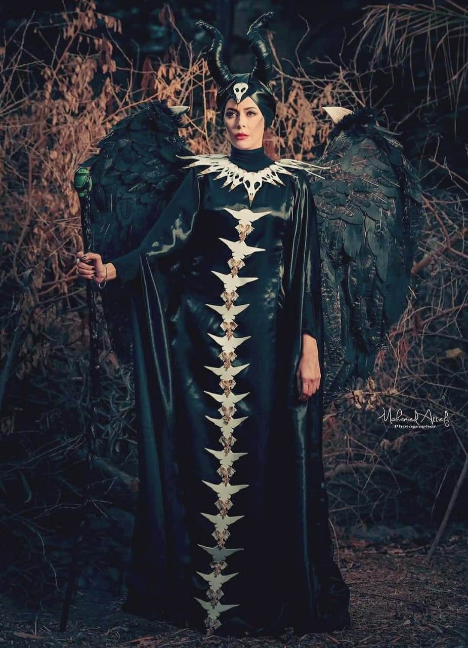على طريقة الممثلة العالمية أنجلينا جولي في فيلمها الشهير Maleficent، قررت مصممة الديكور والإكسسوارات يسرا عبد الرحمن تصميم زي تنكري يحاكي الشخصية ليناسب يوم الرعب العالمي "الهالوين"، الذي يوافق 31 أكتوبر من كل عام.