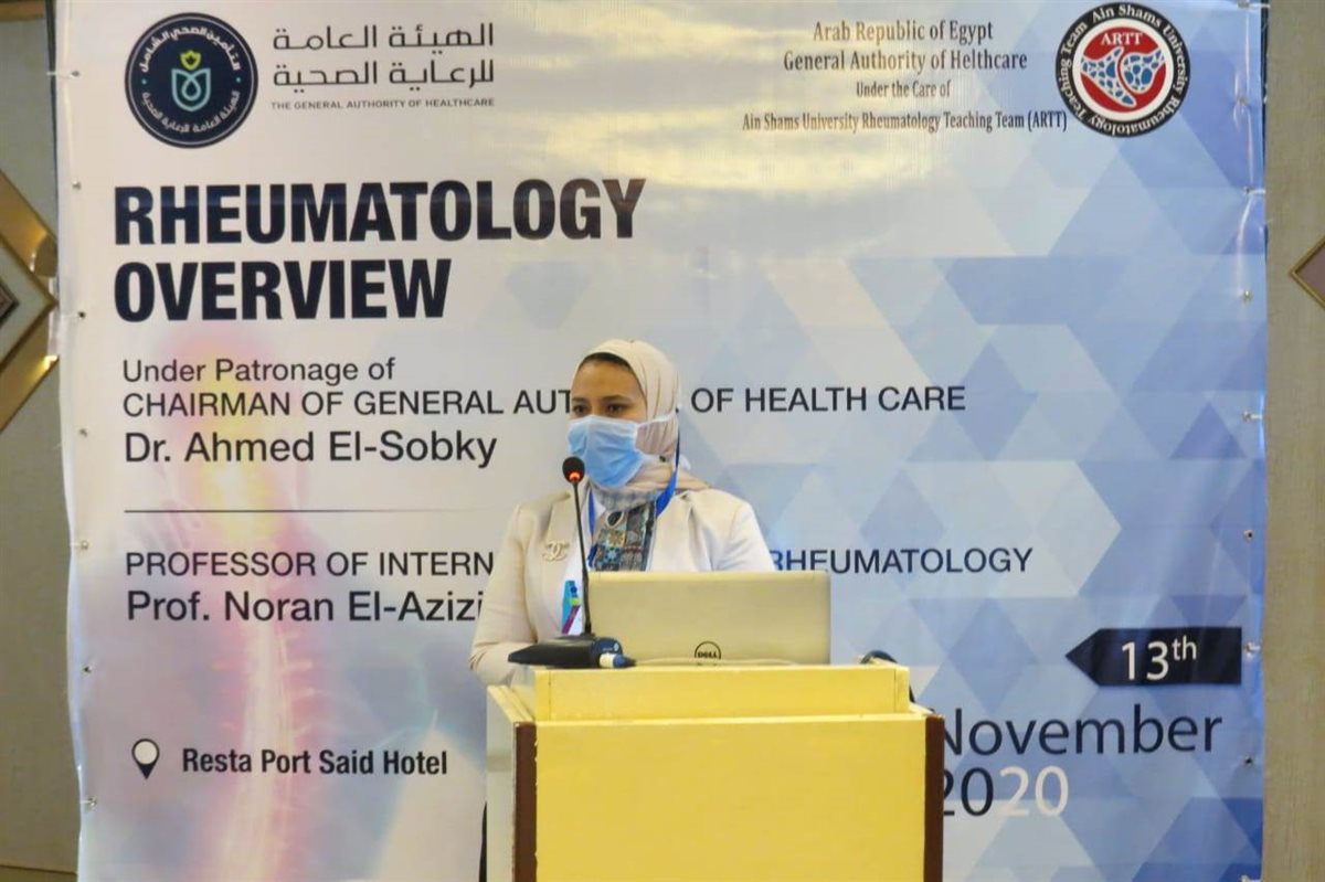 وأضافت أن التدريب يشمل أيضًا الأمراض الروماتيزمية وكوفيد19، الأمصال والتطعيمات في الأمراض الروماتيزمية، الأدوية المستخدمة للتحكم في أعراض الأمراض الروماتيزمية وتأثيره على الحمل الخصوبة، إلى جانب التدريب العملي على مجسم لتعلم كيفية تشخيص أمراض الروماتويد على الجزء السفلي والعلوي للمريض.