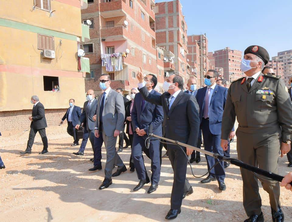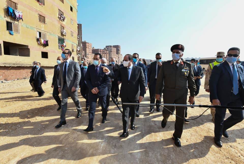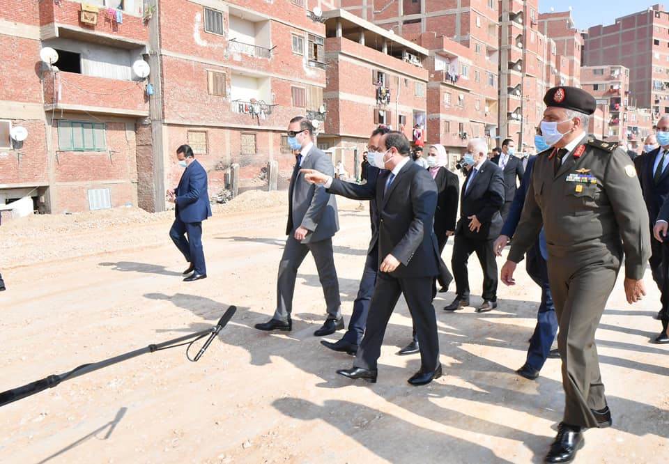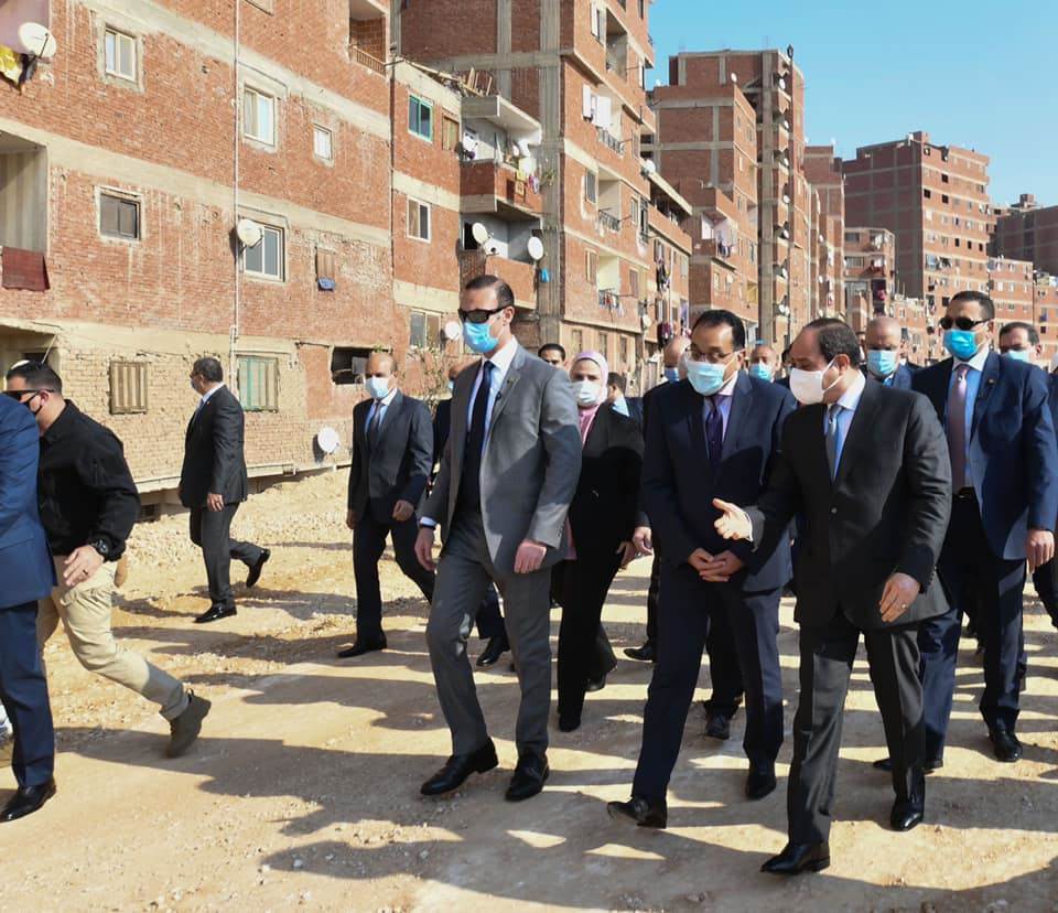 واطلع الرئيس خلال الجولة على التطوير الجاري لتلك المنطقة غير المخططة ذات الكثافة السكانية العالية، ووجه الرئيس بالاستمرار في نهج الدولة وجهودها في تطوير كافة المناطق العشوائية، وغير الآمنة، وغير المخططة المنتشرة علي مستوي الجمهورية من كافة الجوانب.