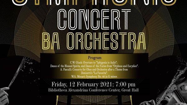 يتضمن الحفل أعمالاً تُقدَّم لأول مرة بالإسكندرية للمؤلف الكلاسيكي كريستوف جلوك، بالإضافة إلى السيمفونية رقم ٤٠ لموتسارت والتي تُعد من أشهر أعماله. يُشارك بالحفل أيضًا صوليست الأوبوا وسام أمين.