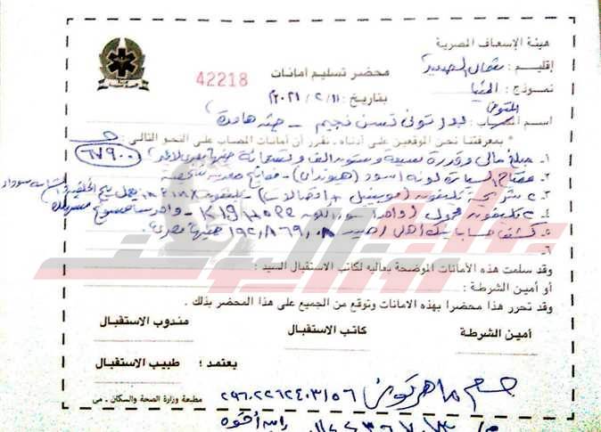 فقاموا على الفور بإبلاغ غرفه عمليات الإسعاف وتوجهوا لمستشفى المنيا العام، لتسليم المبلغ النقدي لإدارة المستشفى والشرطة، لحين وصول أهلية المتوفى.