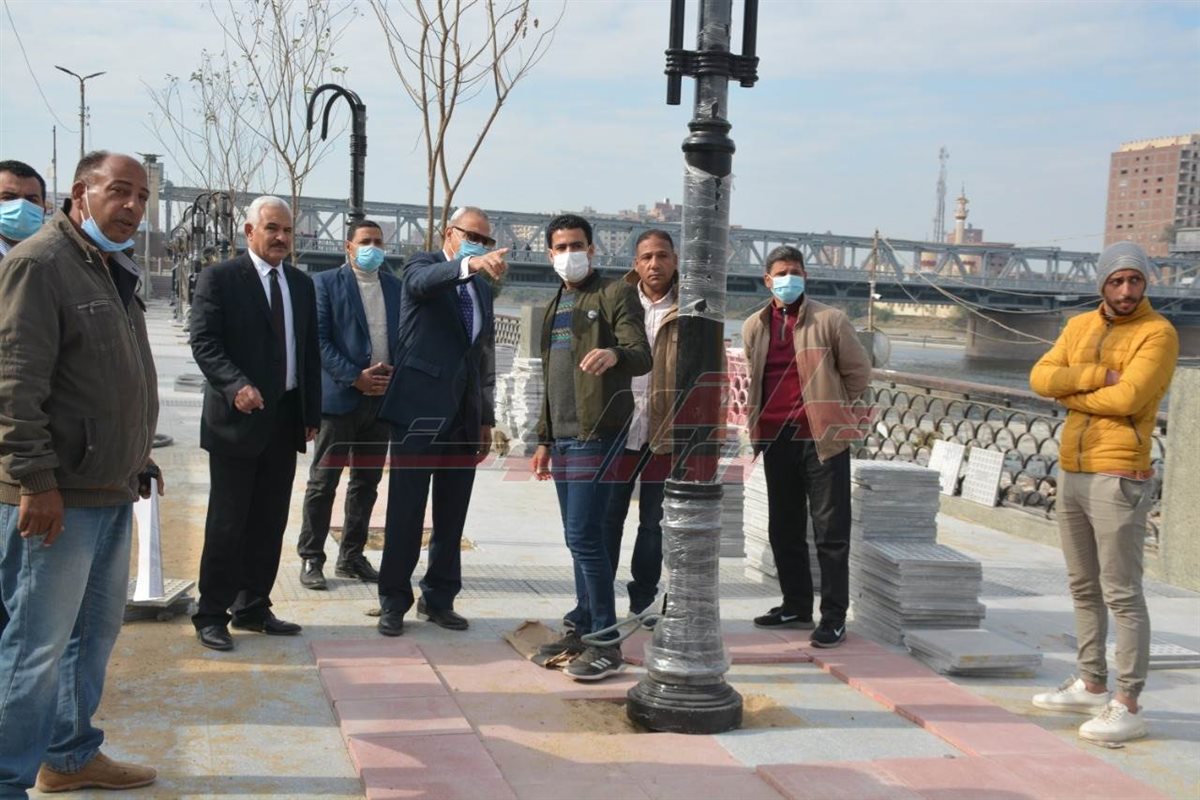 محافظ القليوبية يتابع أعمال رصف طريق كورنيش وممشي النيل ببنها