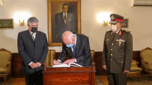 قام الرئيس التونسي قيس سعيد، اليوم السبت، بزيارة ضريح الزعيم الراحل جمال عبد الناصر بالقاهرة. وكتب الرئيس التونسي في دفتر التشريفات أثناء زيارته للضريح.