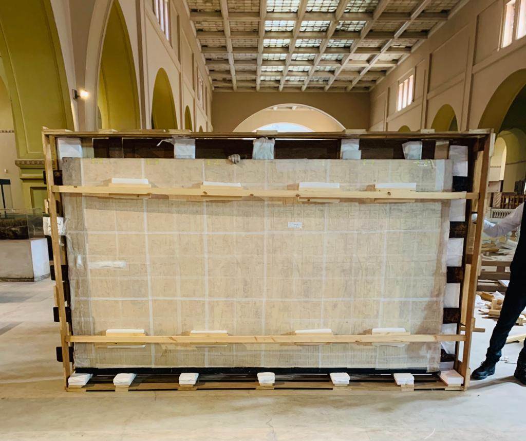 وأضاف أن فريق العمل قام بتغطية المقصورة بورق التشو الياباني ومواد التقوية المناسبة التي تضمن سلامتها أثناء عملية النقل.