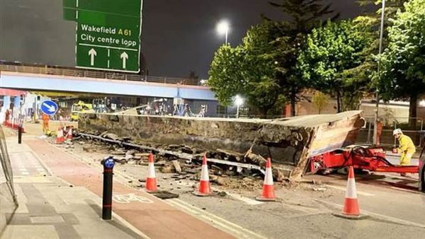 وغرد مجلس مدينة ليدز، صباح اليوم على حسابه بموقع التواصل الاجتماعي “تويتر”، قائلاًإأن جزءًا خرسانيًا من الكوبريتم وضعه بأمان على مركبة ذات حمولة ثقيلة ''.