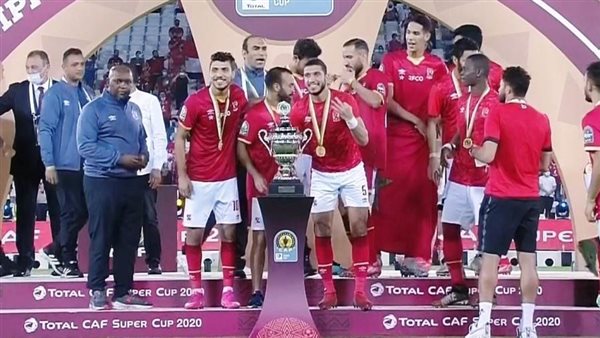 تسلم لاعبو فريق الأهلي الميداليات الخاصة بالمركز الأول، لبطولة السوبر الإفريقي، بعد الفوز على نهضة بركان المغربي بهدفين نظيفين في المباراة التي جمعتهما، اليوم، باستاد جاسم بن حمد بنادي السد في العاصمة القطرية الدوحة.