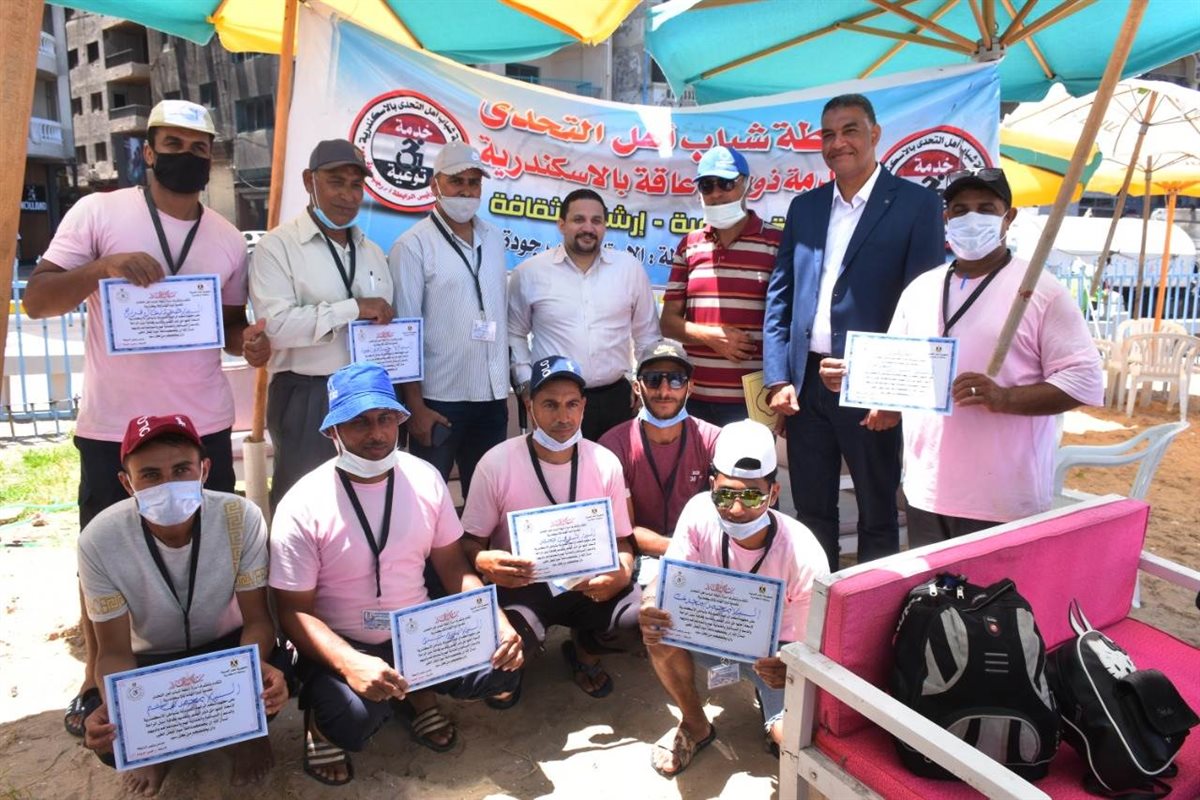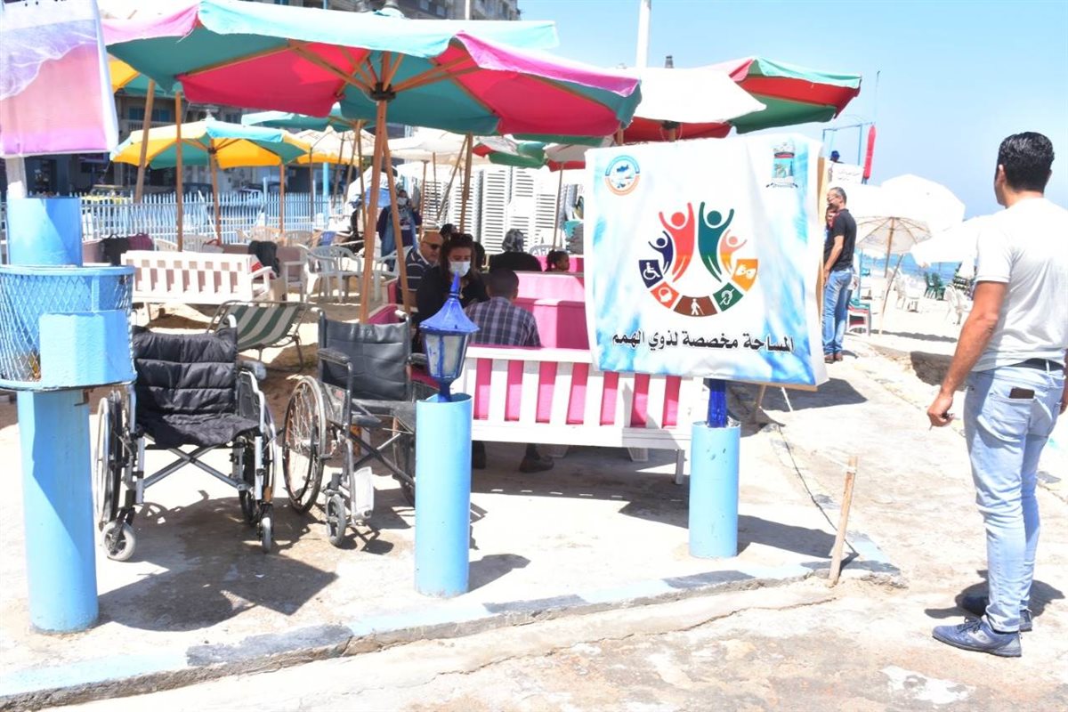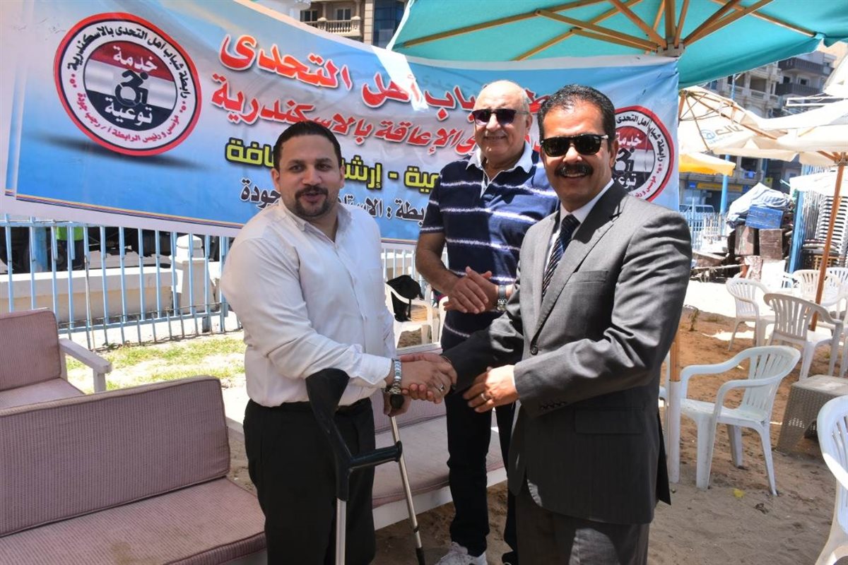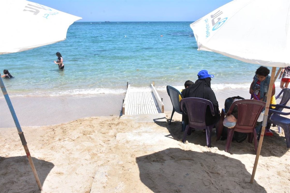 شاطئ المندرة المجانى يستقبل أول فوج من ذوي الهمم
