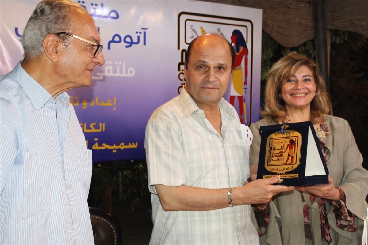 وفي ختام الملتقى، كرمت الكاتبة سميحة المناسترلي رئيس مجلس أمناء مؤسسة آتوم للتنمية الثقافية والإبداع، الكاتب الكبير ابو العلا السلاموني، والدكتورة نجوى عانوس، والكاتب أحمد عبد الرازق أبو العلا، وأهدتهم درع المؤسسة تقديرا لدورهم الفعال في المجالين الثقافي والفني.
