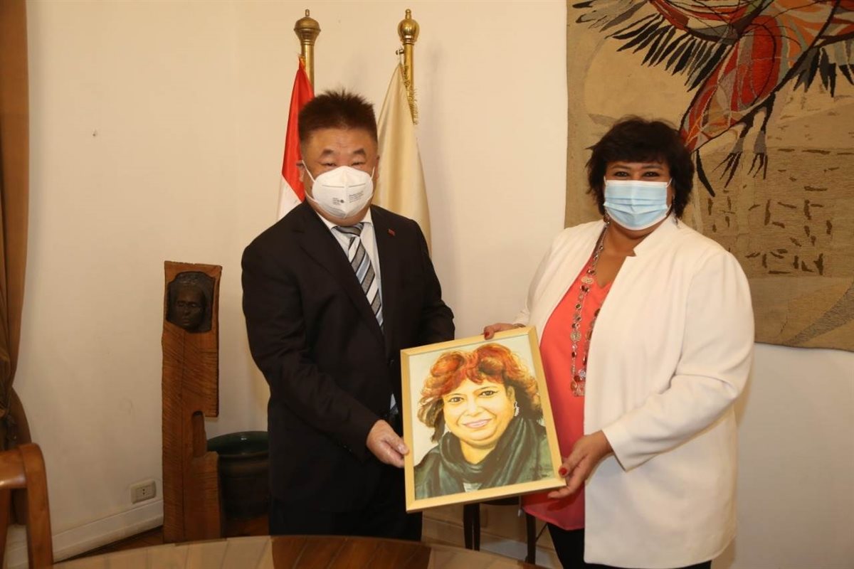وزيرة الثقافة تكرم المستشار الثقافي الصيني بالقاهرة