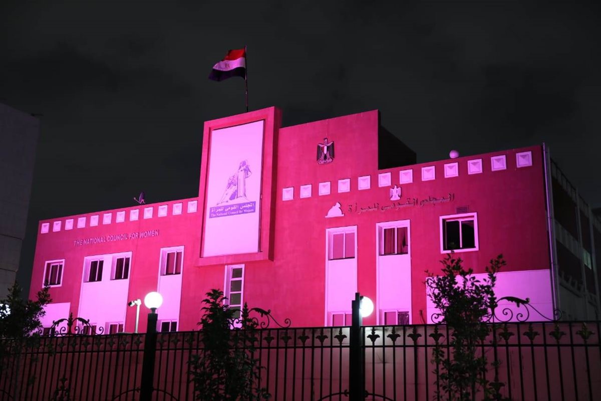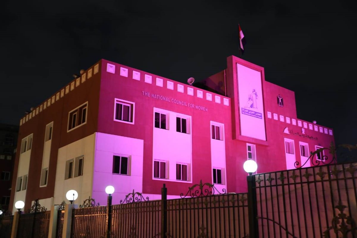 القومي للمرأة يضيء مبناه بالوردي احتفالاً بشهر التوعية بسرطان الثدي