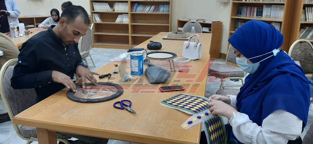 تفقدت الدكتورة حنان موسى فعاليات الورش الفنية، التي واصلت أعمالها لانهاء المنتجات الخاصة بكل ورشة، تمهيدا لعرضها فى المعرض النهائي الخاص بالملتقى ومنها ورش "المشغولات الجلدية، الديكوباج، الطرق على النحاس، النسيج المستحدث، الخيامية، الأركت، الدراما المسرحية".