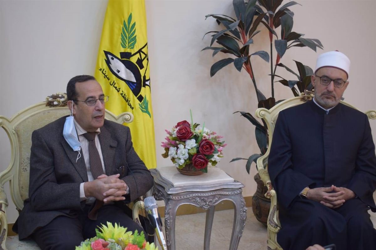 وأعلن المحافظ ( خلال استقباله لوفد القافلة الدعوية الاغاثية لنشر الدين الوسطى القادمة من الأزهر الشريف ومجمع البحوث الاسلامية بتوجيهات الامام الأكبر الدكتور أحمد الطيب شيخ الأزهر الشريف بحضور هشام الخولى نائب المحافظ ومحسن أبو القاسم رئيس الإدارة المركزية لمنطقة شمال سيناء الأزهرية ) أن الأزهر الشريف يولى محافظة شمال سيناء أهمية كبيرة من خلال القوافل الدعوية والاغاثية .. مشيرا الى أن الأزهر الشريف والامام الأكبر الشيخ أحمد الطيب كان من أوائل الجهات التي تعاملت مع حادث الروضة ببناء عدد من المنازل ومنح أهالى القرية تأشيرات حج علاوة على صرف معاشات واعانات لأهالى القرية .