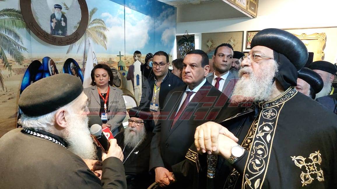 كما تم تقديم عروض لفريق الكشافة وبعض الاستعراضات الرياضية والفنية التي قدمها شباب الكنيسة، وكذا عرض فيلم مطران من ذهب عن جهود الانبا باخوميوس بالإضافة إلى فاصل من الترانيم. ورحب قداسة البابا تواضروس الثانى بالمحافظ وجميع الحضور مشيدا بجهود ودور الرئيس عبد الفتاح السيسى، بالسماح والتوسع في بناء دور العبادة وأعمال التطوير والتنمية التي تتم بكل ربوع مصر ومنها جهود التنمية التي تشهدها محافظة البحيرة تحت قيادة اللواء هشام آمنة. وأضاف اننا نشهد اليوم احتفالية ذات مذاق خاص ونشكر الله الذي حبا البحيرة بالانبا باخوميوس وان الاحتفالية هي للوفاء نكرم فيها شخص أرسله الله يخدمنا بالروح والحق، مشيرا إلى أنني عشت ونشأت على أرض البحيرة أرى الانبا باخوميوس قامة وطنية حكيمة تعلم حب الوطن وتخرج وخدم في معظم دول العالم وكان حب الوطن يلازمه في كل وقت وحين وعلاقاته الطيبة مع الجميع وانه قيادة وطنية بحق يميل إلى الهدوء والعمل كما أنه قيادة كنسية كبيرة خدم في العديد من الكنائس بداية من الكويت. كما التحق بالدير منذ ٦٠ عامًا وخدم بدولة السودان وحتى الآن يتذكره الجميع بكل خير لعلاقاته السمحة والمستمرة حتى وصل بايباراشية البحيرة وتوابعها إلى أعلى الآفاق بعلاقات طيبة مع كل المسؤولين من رؤساء الدول والمحافظين، وسيظل دوما قامة وطنية كبيرة وقامة حكيمة فالحكمة التي تصنع سلام وهو دوما صوت للحكمة فيحل المشاكل بالحكمة والروية والرزانة والتعقل في كل قرار ودائما ما ينادي أن صنع السلام هو أولى أولوياتي، كما أننا نشكر الله على عطاياه ونصلي للأنبا باخوميوس وأن يمتع بالصحة وطول العمر. وقدم اللواء هشام امنة باسمه وباسم كل اهل البحيرة الترحيب بقداسة البابا تواضروس الثاني بابا الإسكندرية وبطريرك الكرازة المرقسية، مشيرا إلى أن قداسة البابا هو بمثابة الطراز الرفيع من الرجال الكبير بطبيعته المتواضع بفطرته والوطني بمواقفه والحاضر دوما بفعله وكلمته. ولم يغب عن بصر العالم وسمعه مواقفه الوطنية وتصريحه التاريخى وطن بلا كنائس خير من كنائس بلا وطن، مشيرا انه صار مضرب المثل في الوطنية ونموذج قبطي إنساني نادر المثال وعظيم القدر نتشرف ان نتشارك اليوم لنحتفل جميعا بالانبا باخوميوس. واضاف انه وبمناسبة اليوبيل الذهبي للأنبا باخوميوس وتأسيس ايباراشية البحيرة وتوابعها بسيامته وخدمته الرعوية لها فانها تعد خمسين عاما من الحب على أرض البحيرة وتفوح منها رائحة الوطنية موزعة على الجميع داخل الكنيسة وخارجها مضيفا ان الانبا هو رجل ومطران من ذهب ورمز ديني متسامح كريم وقيمة وطنية تشهد البحيرة لها بكل الخير والعطاء كما أنه يعد موسوعة التاريخ القبطي العارف والفكر الإنساني المستنير وثقافته جعلته جديرا بالاحترام فهو أسقف ورجل دين من طراز نادر وإنسان يتمتع بأخلاق التسامح والتعاون والاخاء وحب الخير للجميع وعشق الوطن وأخلاقه السمحة قربت اليه المسلم والمسيحي على حد سواء، وهو ما يقدرنا العالم كله لأجله حينما نباهي الدنيا بقاماتنا الدينية والفكرية العالية أزهر وكنيسة. وأشار المحافظ ان الانبا باخوميوس رجل يمتلك من الحكمة والفطنة ما يؤهله للتعامل مع أصعب الأوقات باقتدار وتفوق وهو ما ظهر جليا بخلو الكرسي المرقسي بنياحة صاحب الغبطة والقداسة البابا شنودة الثالث في 17 مارس 2012م اختير قائم مقام البطريرك وقاد الكنيسة خلال 8 أشهر ببراعة الربان الحكيم. والمايسترو الماهر وهو الاب الذي اصبح ابنا لابيه ليسلم الكنيسة إلى رجل لا يقل مهارة أو جدارة أو وطنية ذي الفكر الإنساني المستنير قداسة البابا تواضروس الثاني. وأضاف محافظ البحيرة ان الرئيس عبد الفتاح السيسي أكد مرارا وتكرارا أن مصر دولة عزيزة بابنائها جميعا وان اختلاف الدين ثراء وغنى وحضارة وتعايش لا تقوى عليه إلا اعظم الامم واكبر الحضارات، وان لم تكن مصر بعنصري نسيجها الواحد هكذا لما وقفت صفا واحدا خلف قيادتها تحارب الارهاب والتطرف وتبني للعمران مدنا وللمستقبل أفقا رحي