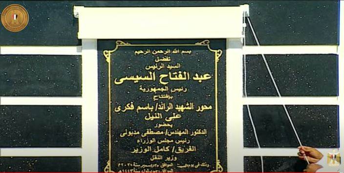 افتتح الرئيس عبد الفتاح السيسي، رئيس الجمهرية، محور الشهيد الرائد باسم فكري، ضمن فاعليات افتتاح عدد من المشروعات القومية بمحافظة قنا.
