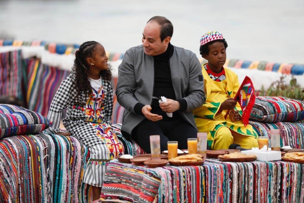 كما أثنى الرئيس السيسي على كرم أهل النوبة وحسن ضيافتهم، مشيرًا إلى أن الدولة بكل أجهزتها حريصة على دخول الخدمات الأساسية لمركز أسوان بالكامل.