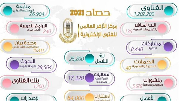 استقبل مركز الأزهر العالمي للفتوى الإلكترونية خلال عام ٢٠٢١م، (1,202,200) فتوى هاتفية ونصية وميدانية وبحثية، تتعلق بكل ما يهم الناس في حياتهم اليومية، وفي كل فروع الفقه من عبادات، ومعاملات، وأحوال شخصية، وقضاياالفكر والأديان، وما يعرض للجمهور من شبهات.