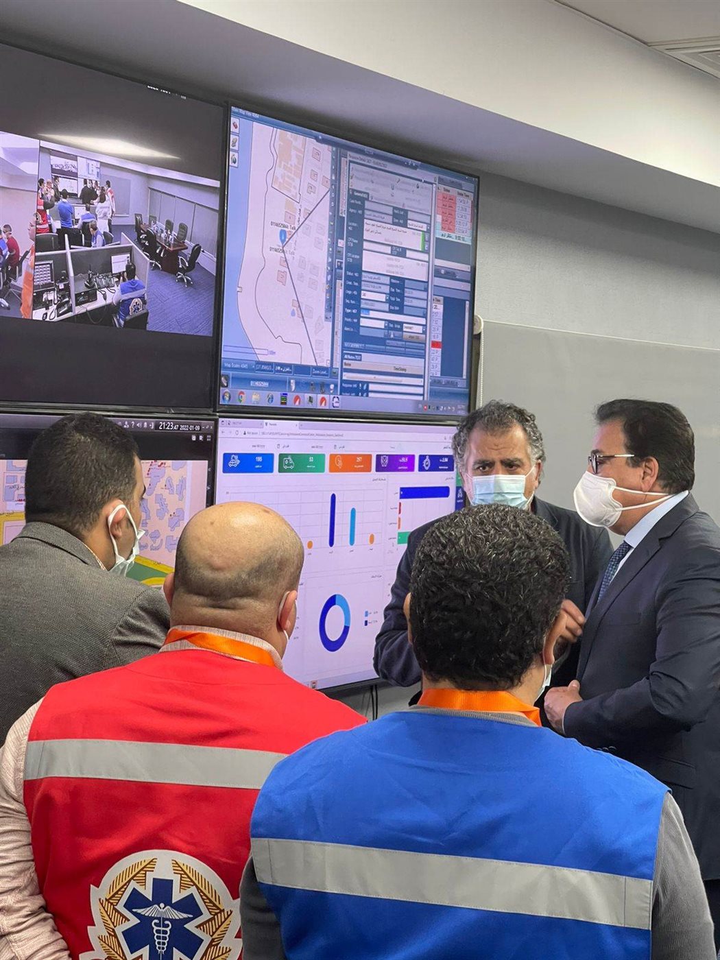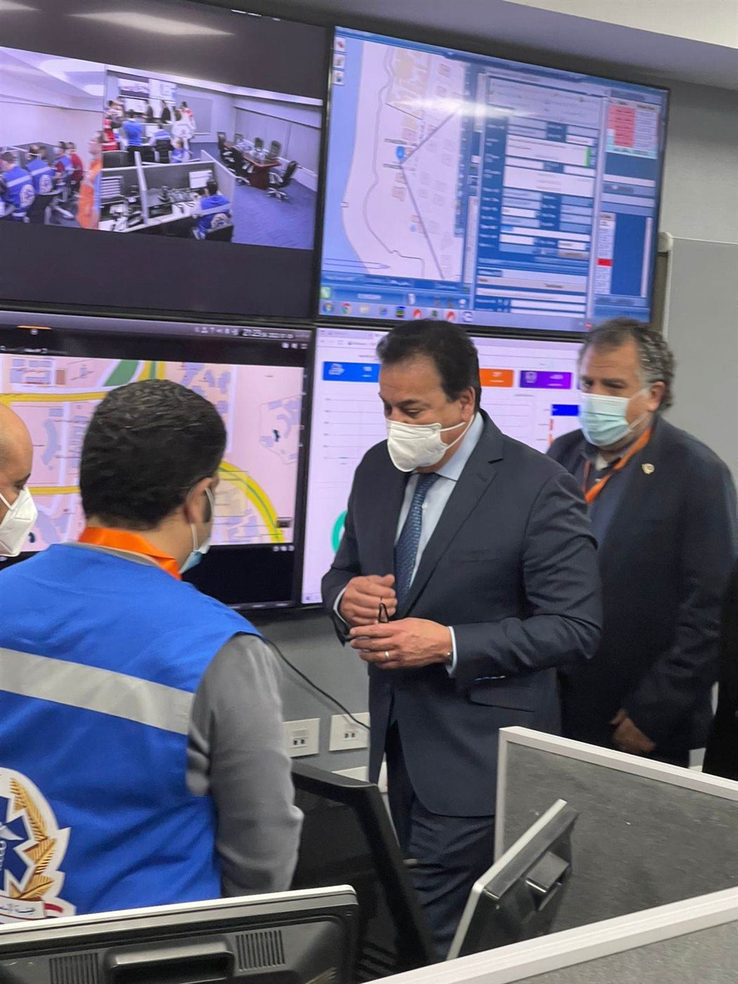 وتابع أن الوزير خلال زيارته للمركز الإقليمي للإسعاف بمدينة شرم الشيخ، تفقد غرفة العمليات وآلية تلقي البلاغات، وراجع عدد سيارات الإسعاف وتجهيزاتها، وزمن الاستجابة للبلاغات، كما اطلع على خطة تمركز السيارات وخارطة تحركها.