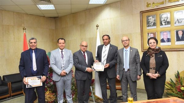مجلس جامعة أسيوط يكرم اثنين من عمداء الكليات لبلوغهما سن المعاش