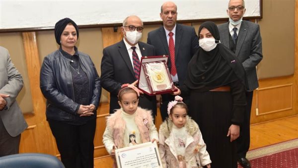 رئيس جامعة أسيوط يكرم أربع أسر عاملين متوفين بإهدائهم دروعا تذكارية