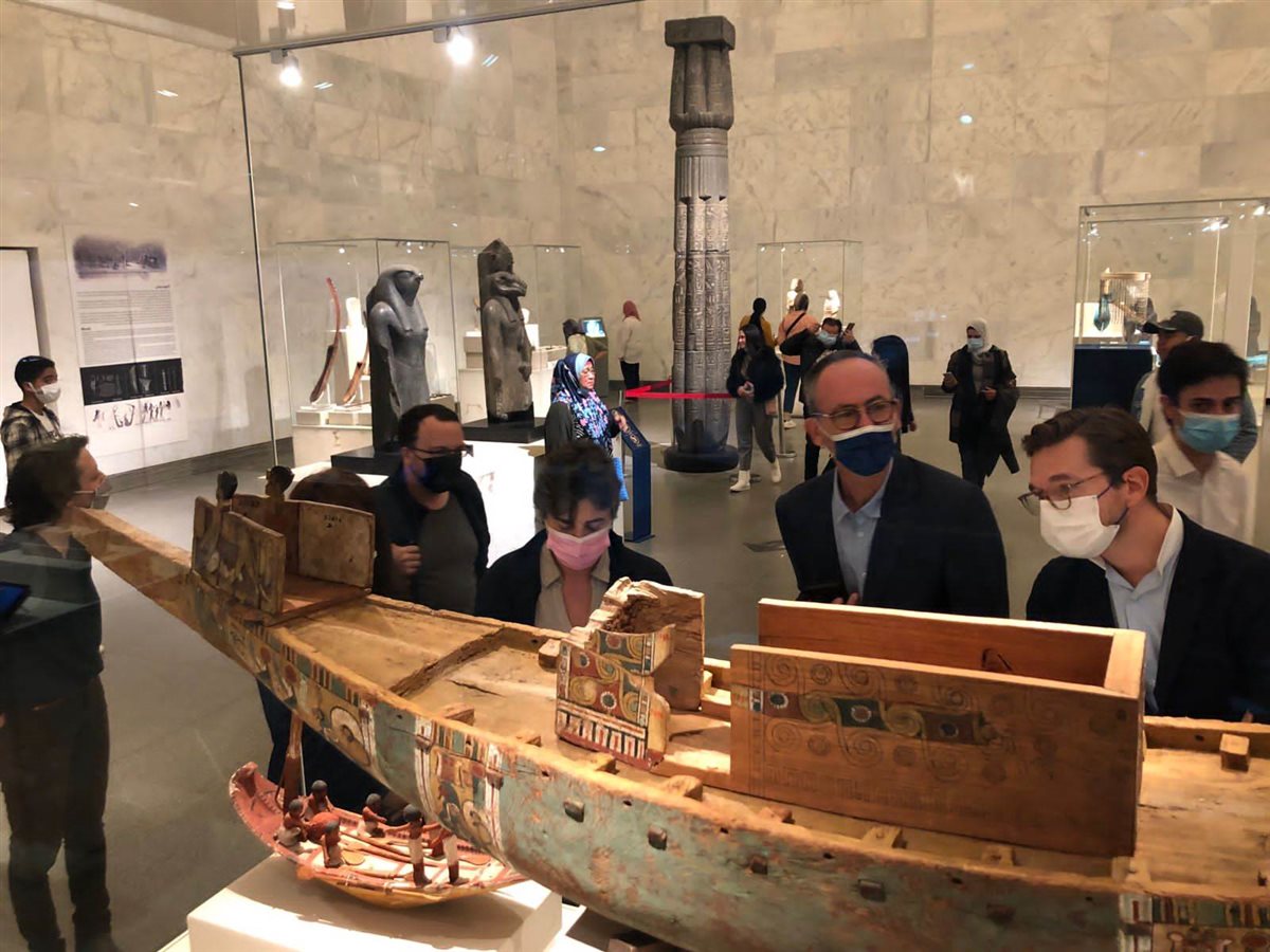 وفي المتحف القومي للحضارة المصرية بالفسطاط تضمنت الزيارة، جولة داخل قاعات المتحف، استمعوا خلالها إلى شرح مفصل عن تاريخ إنشاء المتحف وأبرز ما يضمه من كنوز أثرية رائعة تعرض بالقاعة العرض المركزية وقاعة المومياوات.