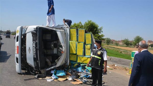 محافظ القليوبية يفاجئ بانقلاب سيارة في الطريق الزراعي بقها فنزل للاطمئنان على المصابين