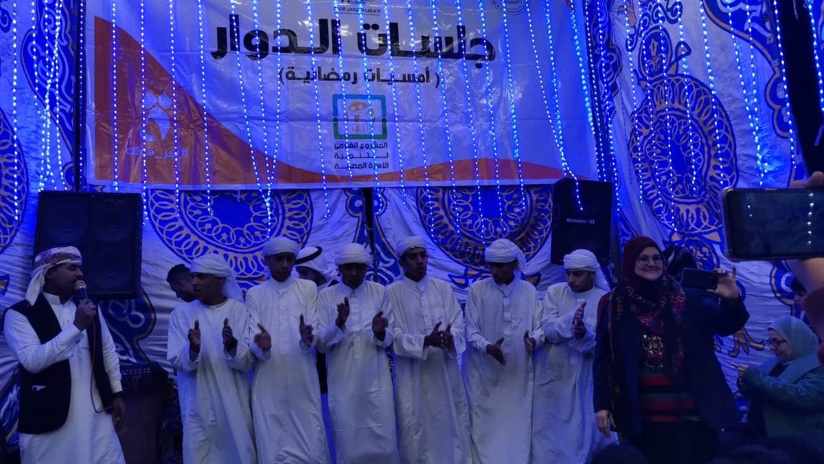 وأعلنت احسان داود غالي مقرر فرع المجلس القومي للمرأة بشمال سيناء أنه أقيمت عدد 5 أمسيات بالأحياء ومراكز الشباب لادخال السعادة والفرح على أهل سيناء.. مشيرة الى أن الأمسيات نظمها فرع المجلس بالتعاون مع وزارة الثقافة (ممثلة في الهيئة العامة لقصور الثقافة).. حيث استهدفت كل أمسية عدد ٣٠٠ من السيدات والرجال والأطفال بالمحافظة، وشملت الأمسيات عروضا فنية وثقافية تناولت الرسائل الأساسية للمشروع القومي لتنمية الأسرة، والتي تم صياغتها ببساطة لتنطلق على لسان الأراجوز والعرائس المتحركة لتشكيل حوار تفاعلي مباشر مع الجمهور.. كما شملت الأمسيات الرمضانية انشادا دينيا وأغاني وطنية.