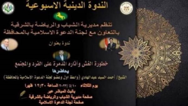 "خطورة الغش وآثاره المدمرة على الفرد والمجتمع" ندوة تثقيفية بالشباب والرياضة بالشرقية