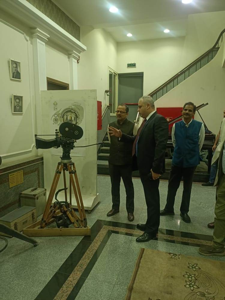 واختتم اليوم بتفقد كل من عبد المنعم ونائب السفير الهندي متحف القصر وما يحتويه من قطع أثرية من آلات صناعة السينما.