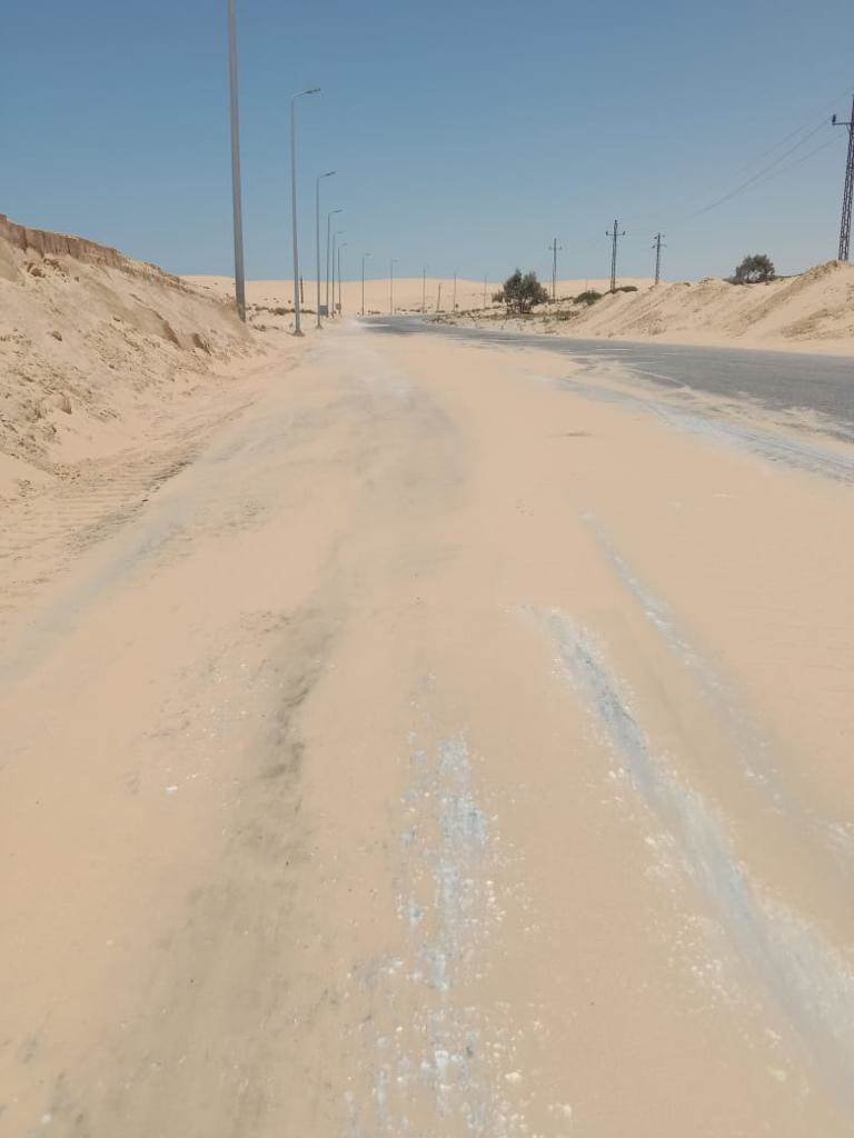 وتقوم اللجنة المشكلة، برئاسة اللواء هشام الخولى نائب محافظ شمال سيناء بعضوية كل من: اللواء أسامة عفش رئيس مركز ومدينة العريش، اللواء محمد بهجت رئيس مركز ومدينة بئر العبد ، المهندس عبد الهادى سليم محمد مدير عام مديرية الطرق بشمال سيناء، المهندس حسام الشريف مدير التخطيط العمرانى بالمحافظة، وعدد من القيادات الأمنية والتنفيذية بالمحافظة بإزالة الرمال وكافة العوائق من الطريق.. علاوة على استكمال إنارة الطريق بكشافات الكهرباء على جانبيه وتزويده بلوحات إرشادية لإرشاد السائقين بأماكن المنحنيات والتحويلات المرورية والتهدئة حرصا على حياة المواطنين.