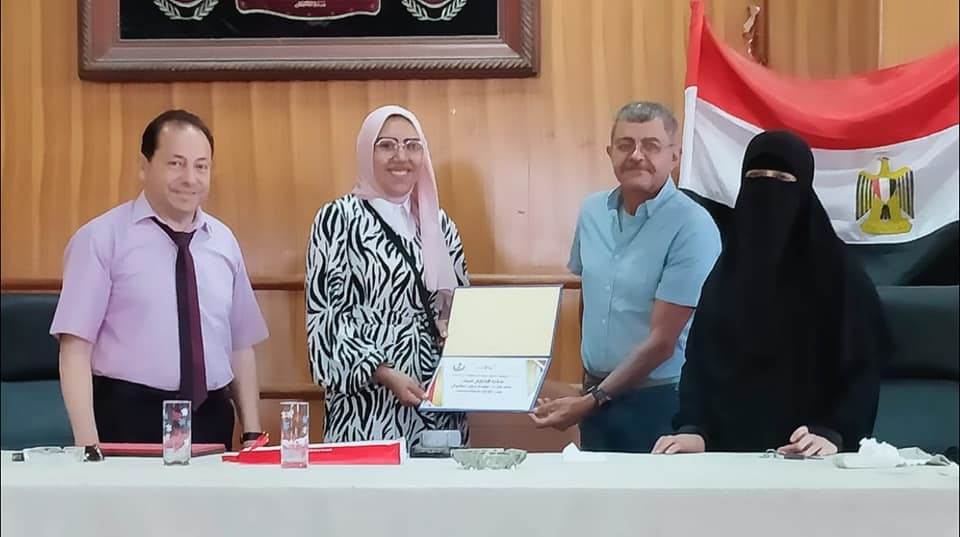 ومن جهة أخرى .. تم تكريم المتميزين من المثقفين الصحيين الجدد .. حيث كرمهم الدكتور محمد فايز أنيس وكيل مديرية الصحة يرافقه الدكتور حاسم حمدى مدير عام التثقيف والإعلام الصحي والدكتورة ريهام الغزال مدير التثقيف والاعلام الصحي بإدارة العريش .