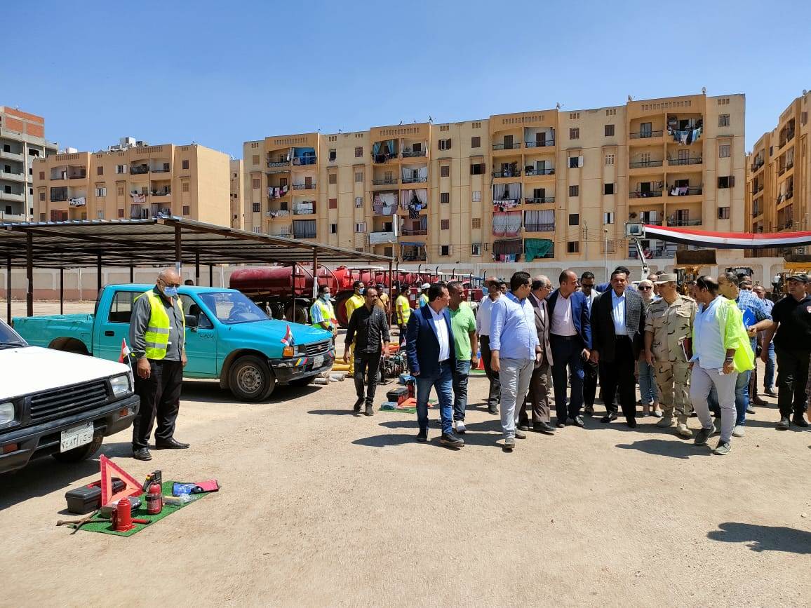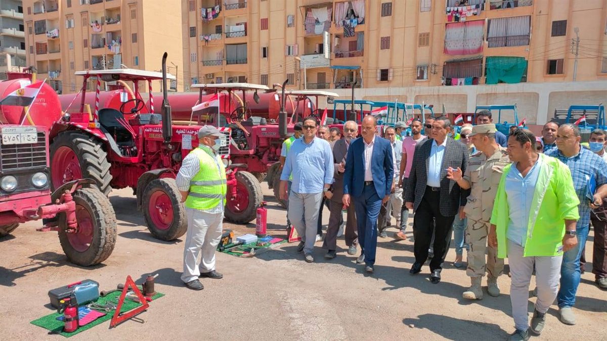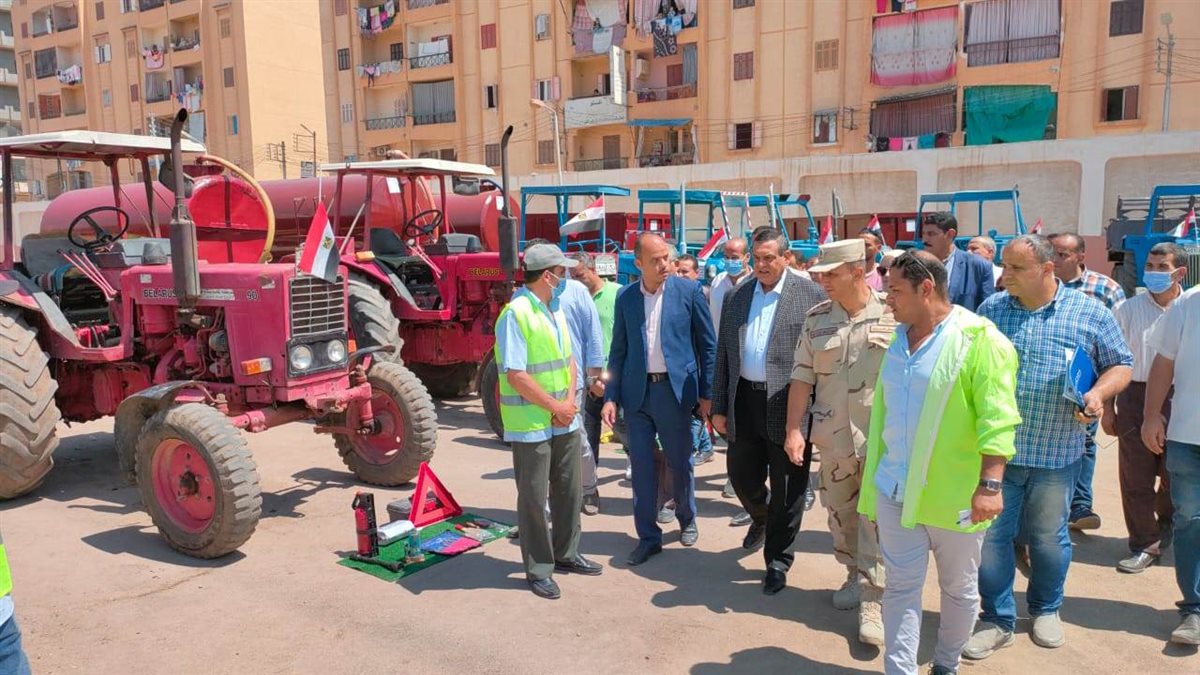 كما قام المحافظ بتفقد إصطفاف المعدات الفنية المستخدمة لإدارة الازمات بمركز شبراخيت وعددها 35 مركبة ومعدة تشمل سيارات القلاب والبدال واللوادر ومواتير وماكينات شفط المياه ومقطورات النظافة والكسح والجرارات الزراعية وماكينات وسيارات المحولات الكهرباء وسيارات لنقل أسطوانات الغاز، وذلك فى إطار متابعة جاهزية كافة المعدات لمواجهة الأزمات والكوارث.