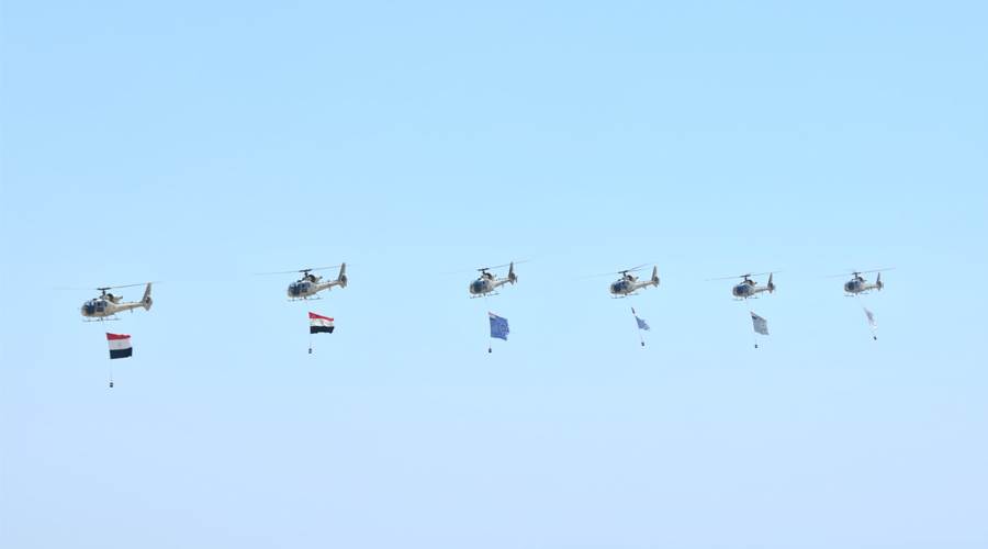 إنطلقت فعاليات العرض الجوى المصري الكورى الجنوبى “Pyramids Air Show 2022”الذي ينفذ فوق سفح الأهرامات بمشاركة فريق الألعاب الجوية الكورى الجنوبى “النسور السوداءBlack Eagles” وفريق الألعاب الجوية المصري “النجوم الفضية “Silver Stars” وفريق طائرات الهيل جازيل المصري “حورس” وفرق القفز الحر والدلتا من قوات المظلات المصرية والموسيقات العسكرية المصرية.