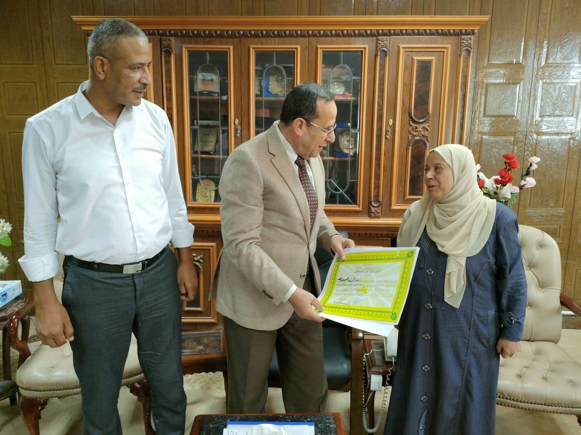 كما كرم المحافظ كلا من: محمود نجيب الموظف السابق بقسم الأجازات الخاصة بمديرية التربية والتعليم، ومنال محمد ابراهيم الموظفة السابقة في قسم الحسابات بديوان عام المحافظة، حيث تم منحهما شهادتي تقدير، وذلك بمناسبة احالتهما الى المعاش.. متمنيا لهما كل توفيق في حياتهما.